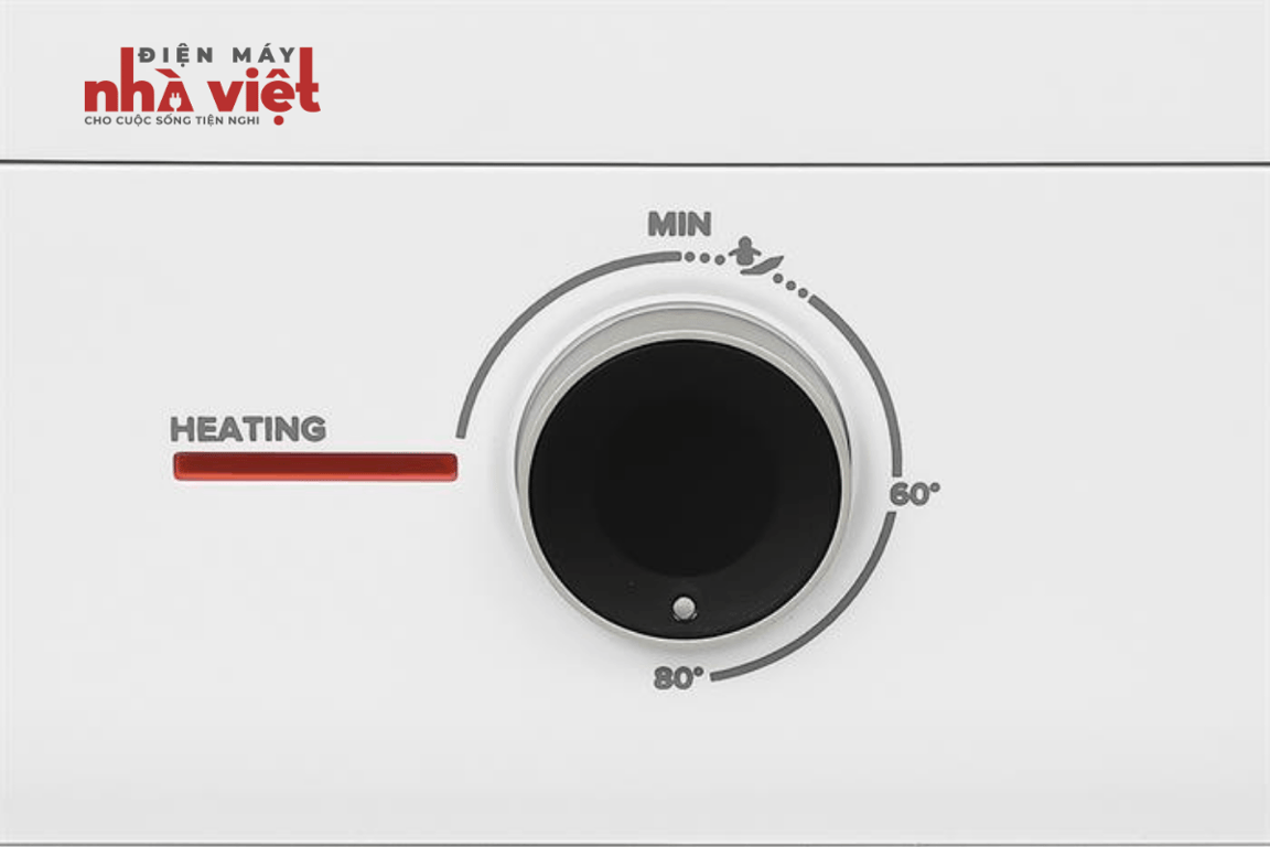 - Máy được trang bị núm vặn điều chỉnh nhiệt độ và đèn báo đun nóng giúp người dùng thuận tiện quan sát và tùy chỉnh thiết bị dễ dàng.