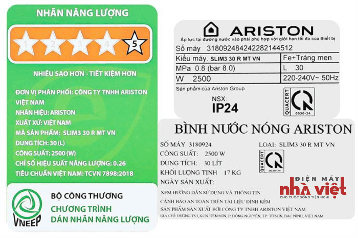 - Thuộc dòng máy nước nóng gián tiếp, Ariston 2500W SLIM3 30 R MT có dung tích 30 lít phù hợp với gia đình từ 3 - 5 thành viên.
