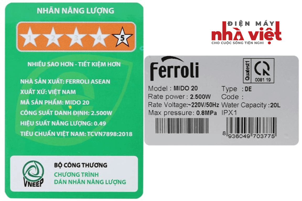 Ngoài chống rò rỉ nước từ bên trong máy và từ bên ngoài vỏ máy, nhà sản xuất còn lắp đặt thêm cầu dao ELCB trên máy nước nóng Ferroli MIDO-DE 20L để bảo vệ người tiêu dùng.