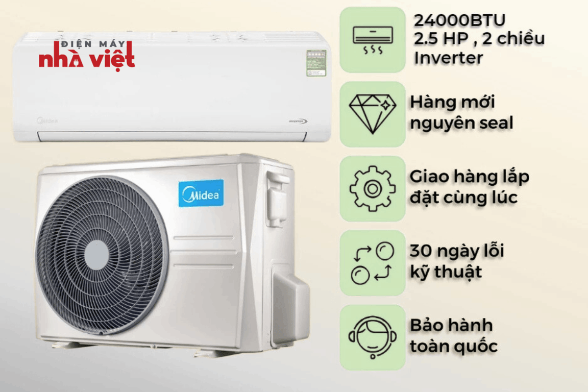 Đánh giá chi tiết về điều hòa Midea Inverter 2 chiều MSAFB-24HRDN8