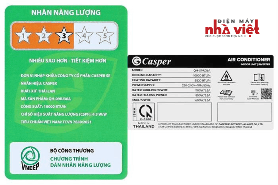 Công suất 9000btu, chiếc điều hòa Casper inverter QH-09IU36A này phù hợp để lắp đặt trong những không gian phòng có diện tích dưới 15m2 như phòng ngủ, phòng khách hay phòng làm việc nhỏ.