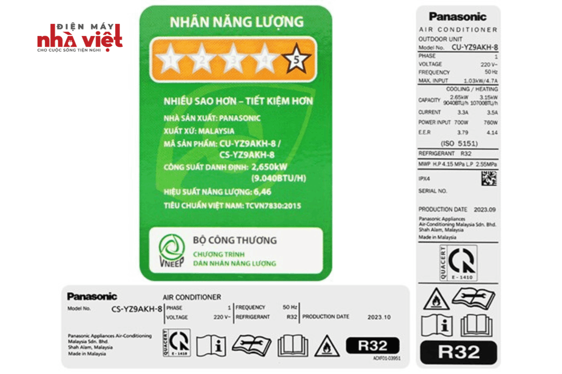 Máy điều hòa Panasonic 2 chiều 9000BTU YZ9AKH-8 loại inverter tiết kiệm điện tiêu chuẩn sử dụng gas R32 nhập khẩu chính hãng Malaysia. Panasonic YZ9AKH-8 đây là mẫu mới ra mắt 2024 thay thế cho model trước đó YZ9WKH-8 được người tiêu dùng chọn mua nhiều nhất phân khúc điều hòa 2 chiều cao cấp.
