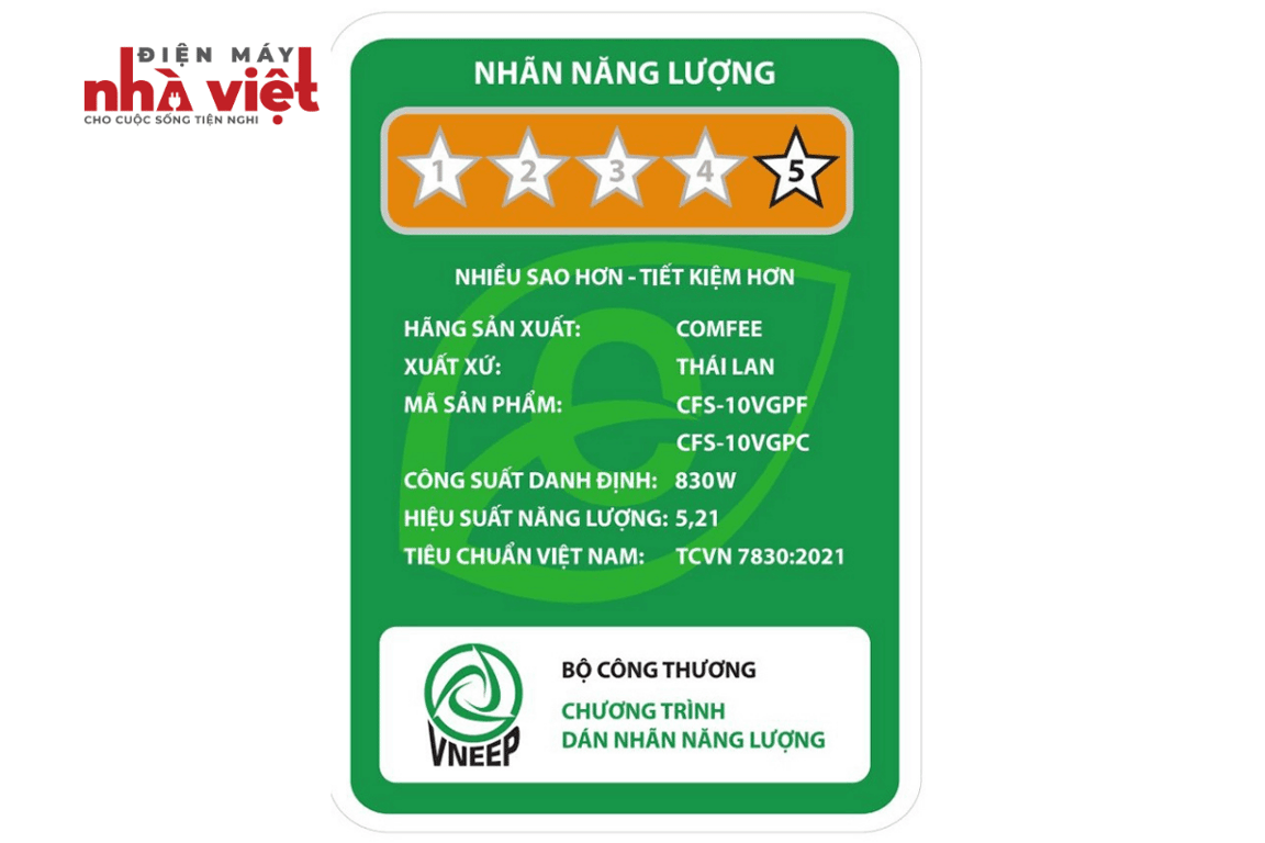Đạt chuẩn 05 sao mới, đảm bảo tiết kiệm điện vượt trội trong phân khúc phổ thông