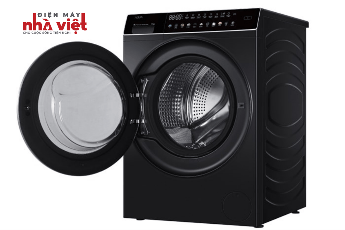 - Máy giặt Aqua sở hữu thiết kế hài hoà, được hoàn thiện với chất liệu thép không gỉ với tone màu đen sang trọng, dễ dàng phù hợp với những vật dụng khác trong nhà.