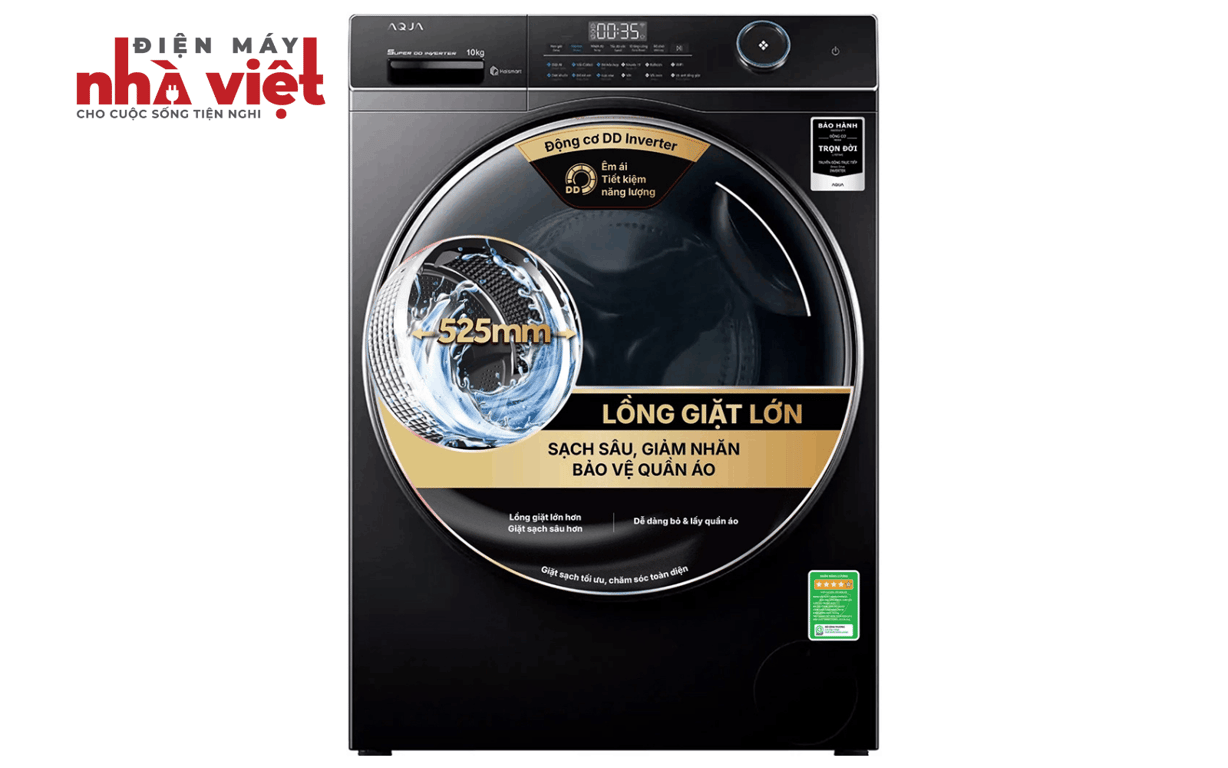 - Máy giặt Aqua áp dụng công nghệ Inverter giúp tiết kiệm điện năng đáng kể so với máy giặt thông thường.
