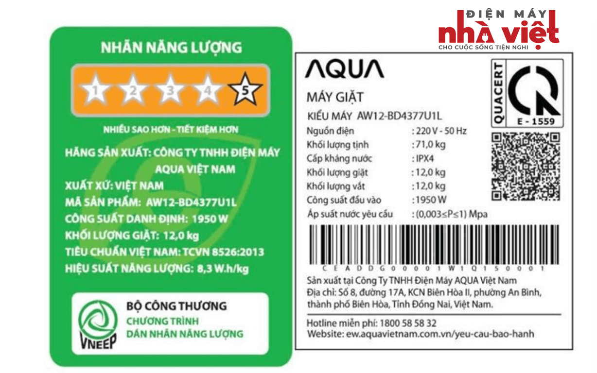 Máy giặt Aqua AW12-BD4377U1L(GN) là lựa chọn hoàn hảo cho những gia đình hiện đại. Sở hữu thiết kế cửa trước tinh tế với sắc đen sang trọng, chiếc máy không chỉ là thiết bị gia dụng mà còn là điểm nhấn thẩm mỹ trong không gian sống của bạn.