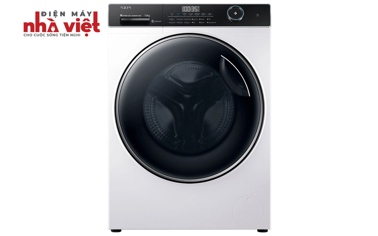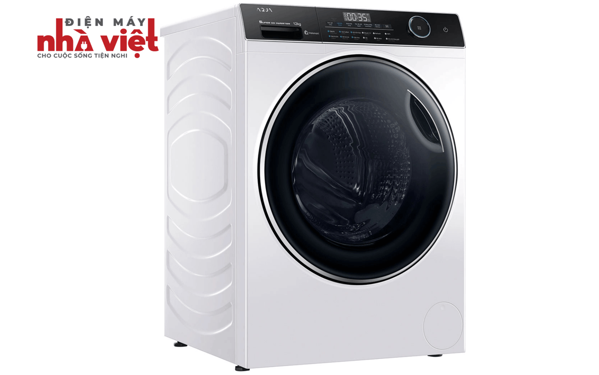 - Máy giặt Aqua Inverter 12 kg AW12-B4959U1K(W) là máy giặt lồng ngang - cửa trước với thiết kế màu đen chủ đạo, mang lại cảm giác sang trọng, phù hợp với nhiều không gian đặt để.