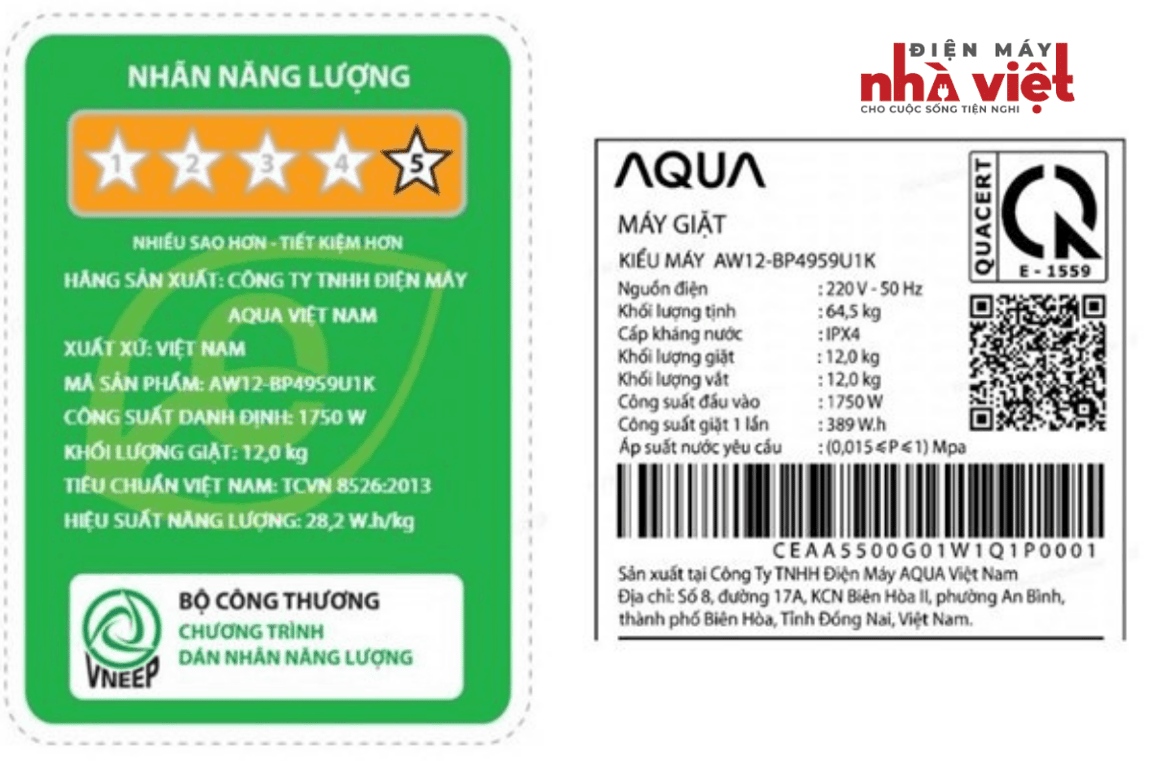 - Nhãn năng lượng chuẩn 5 sao, hiệu suất năng lượng 28.2 Wh/kg.