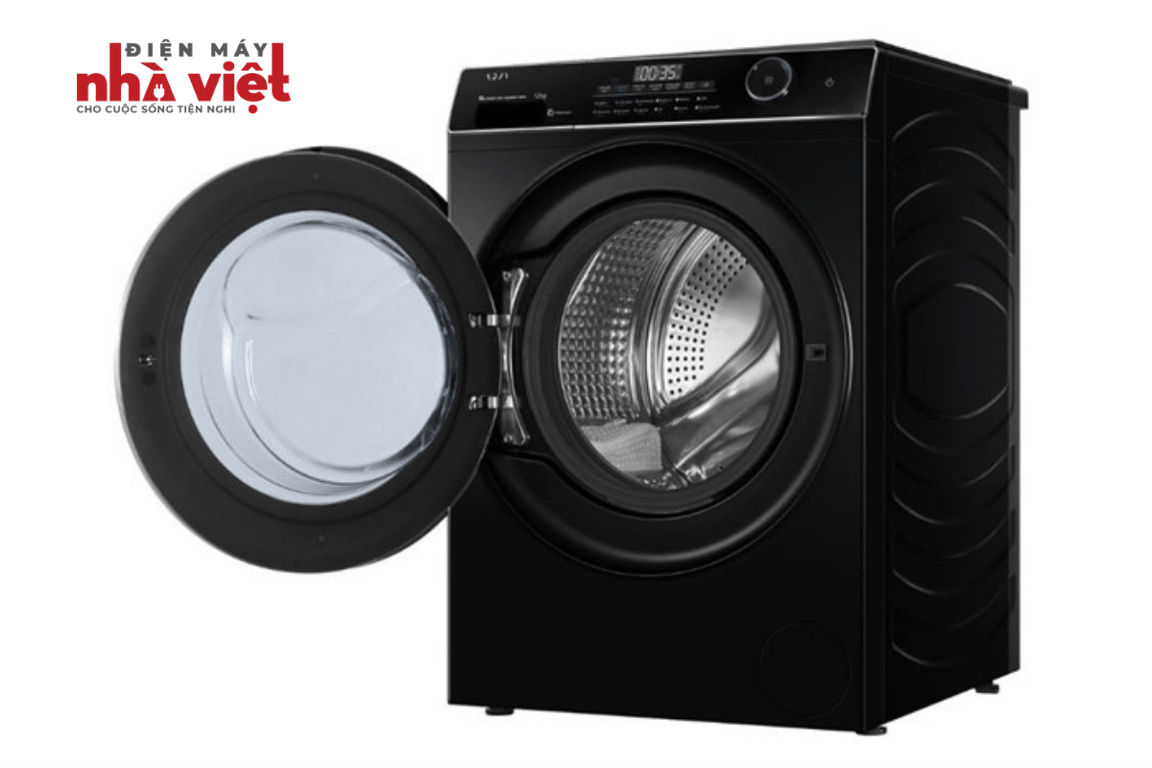 - Máy giặt Aqua Inverter 12 kg AW12-BP4959U1K(B) là máy giặt lồng ngang - cửa trước với tone màu đen trung tính, phù hợp với nhiều không gian nội thất. Thiết kế này mang lại hiệu quả sang trọng cho phòng giặt tại gia đình.