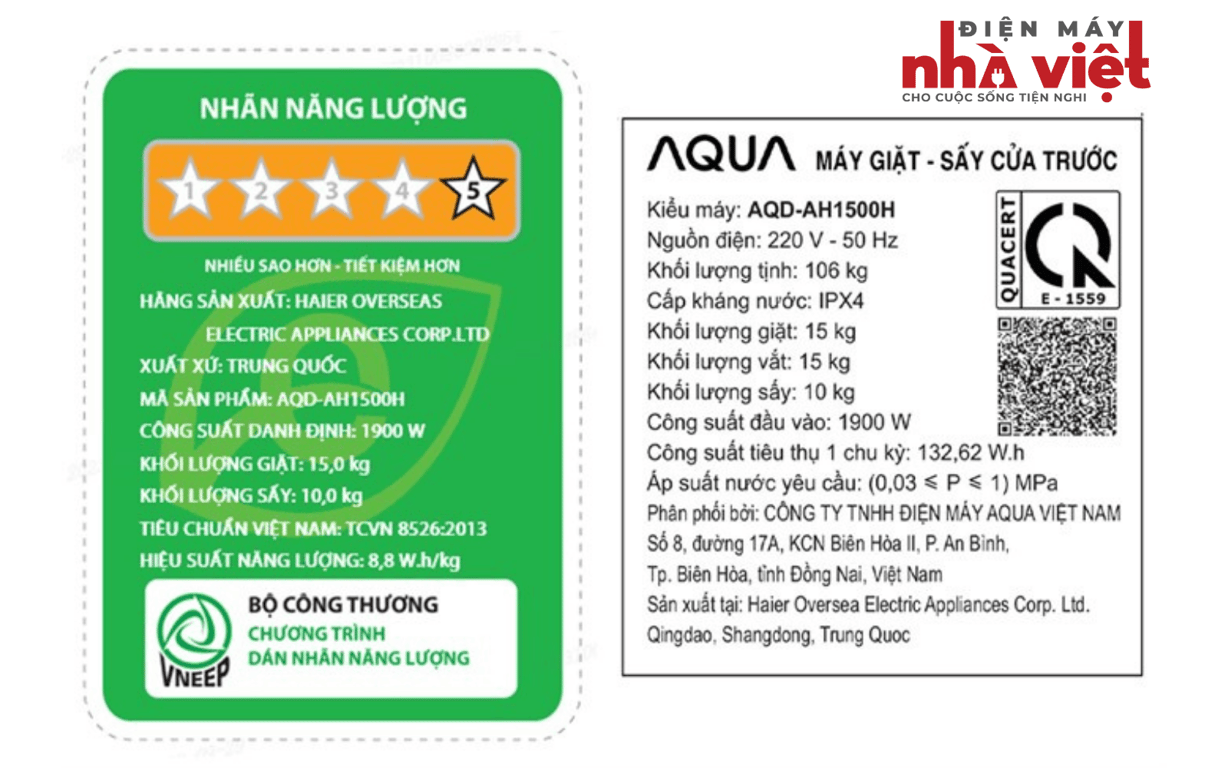 - Máy giặt sấy AQD-AH1500H được tích hợp tính năng giặt và sấy trên cùng một sản phẩm, nhờ đó mang lại hiệu quả trong việc tiết kiệm chi phí mua sắm và không gian lắp đặt cho người sử dụng.