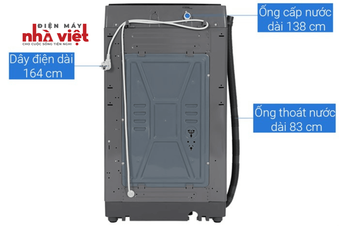 - Kiểu dáng: máy giặt lồng đứng với kiểu dáng đơn giản, màu xám trung tính kết hợp hài hòa với các món đồ nội thất trong không gian sống của gia đình.
