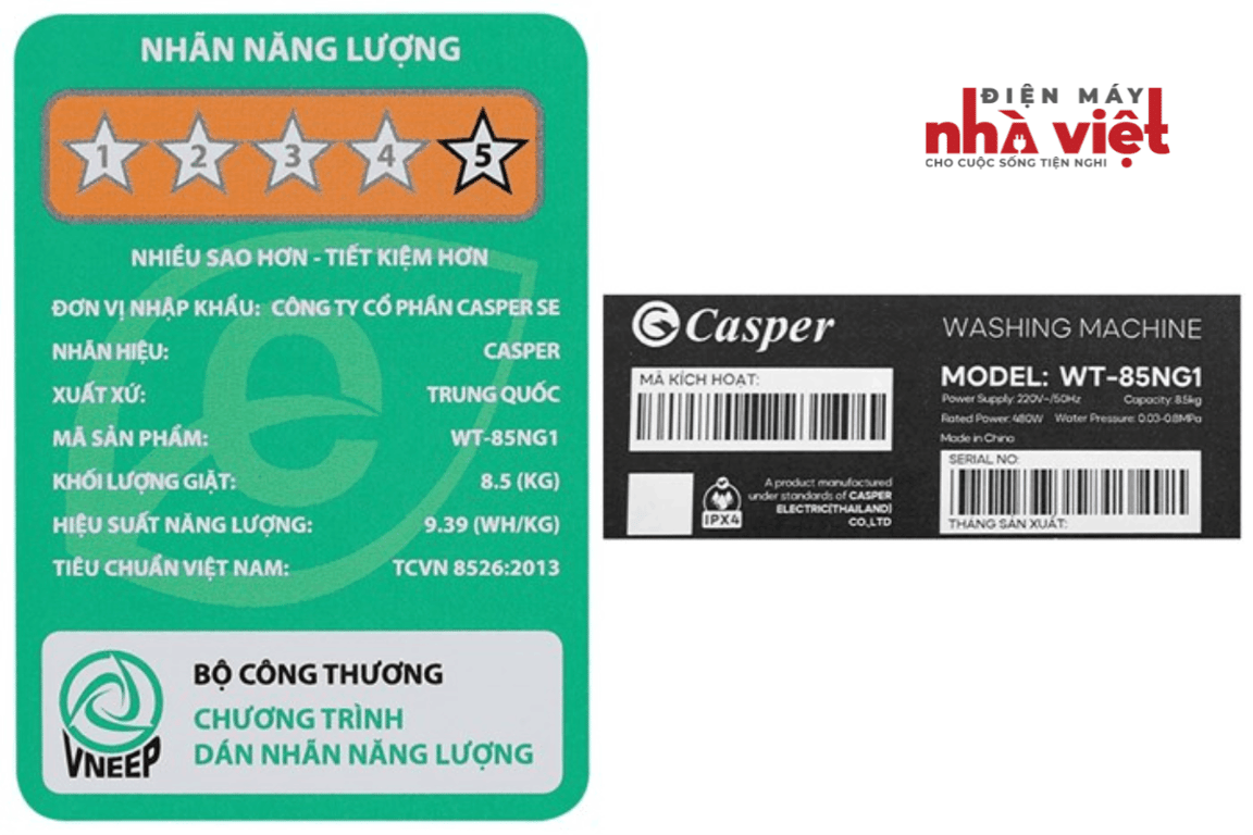 - Nhãn hiệu năng lượng 5 sao với hiệu suất sử dụng điện tầm 9.39 Wh/kg.