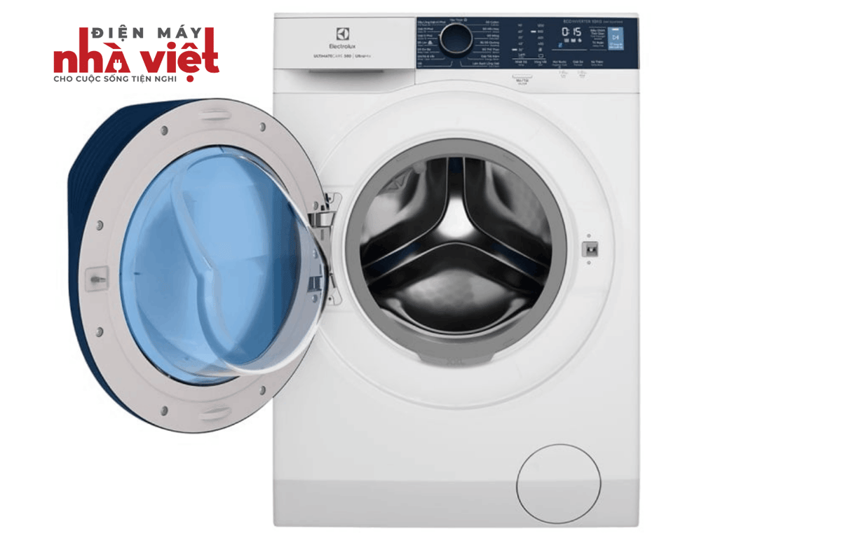 Máy giặt Electrolux Inverter 10 kg EWF1024P5WB có thiết kế sang trọng, gam màu trắng tinh tế, làm nổi bật không gian nội thất cho gia đình.