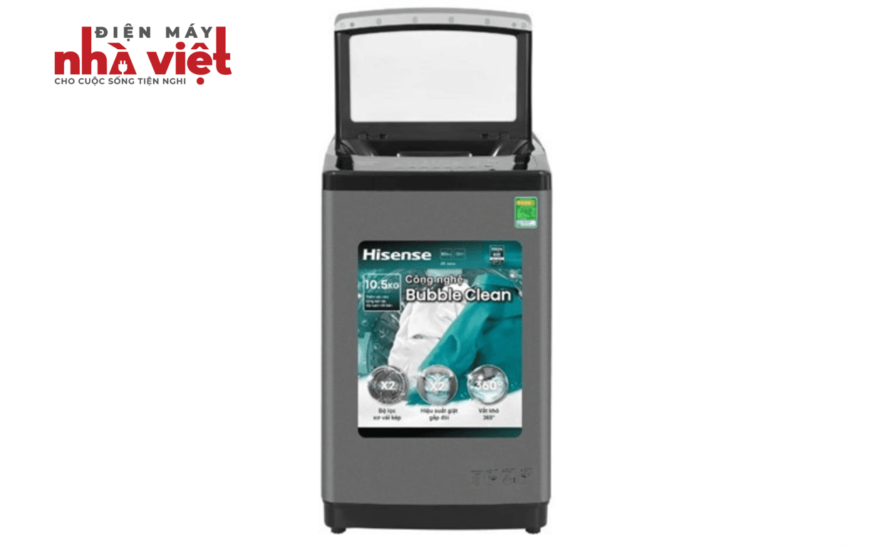 Máy giặt Hisense 10.5 kg WTJA1015UT khối lượng giặt 10.5 kg, công nghệ Active Hygiene 1.0 diệt khuẩn kép lên đến 98.35%, công nghệ tạo bọt Bubble Clean loại bỏ bẩn, tránh cặn bột giặt còn sót lại, bộ lọc đôi Magic Filter loại bỏ xơ vải và tạp chất giúp quần áo luôn sạch sẽ, tinh tươm.