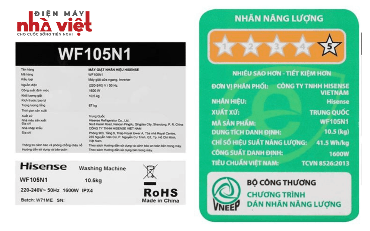 Máy giặt Hisense Inverter 10.5 kg WF105N1 không chỉ mang đến hiệu quả giặt sạch mạnh mẽ mà còn giúp bạn tiết kiệm thời gian, điện năng và bảo vệ sức khỏe cho cả gia đình. Thiết kế hiện đại, công nghệ hơi nước diệt khuẩn và các tiện ích thông minh sẽ nâng tầm trải nghiệm giặt giũ hằng ngày của bạn.