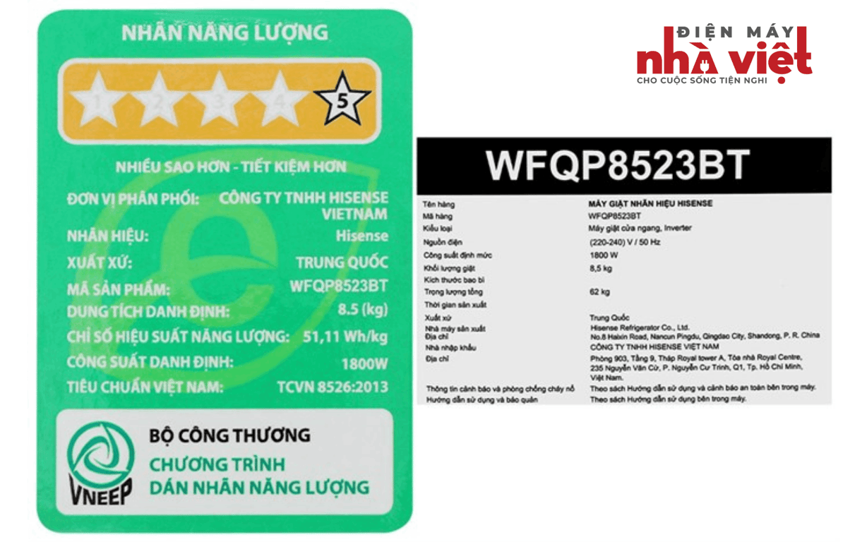 - Máy giặt Hisense có khối lượng giặt 8.5 kg, thích hợp cho các gia đình từ 3 - 5 thành viên.