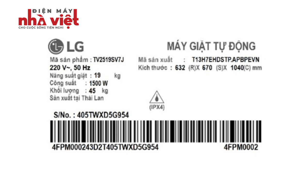 Máy giặt LG Inverter 19 kg TV2519SV7J lồng đứng