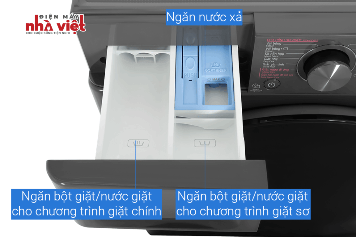 - Công nghệ giặt hơi nước Steam, giúp quần áo có thể loại bỏ được 99.9% các chất gây dị ứng hay các vấn đề về đường hô hấp. Ngoài ra, công nghệ giặt này cũng giúp cho quần áo ít bị nhăn hơn sau mỗi lần giặt.
