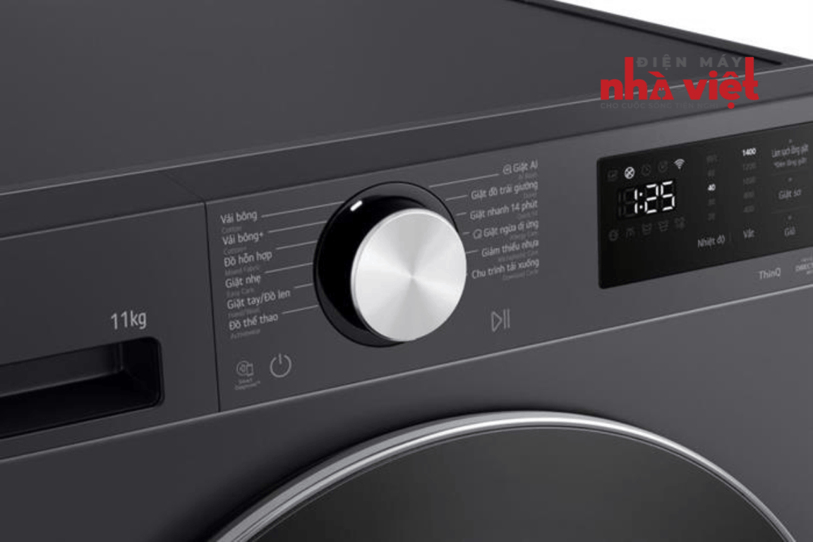 Ngay từ khi ra mắt năm 2025, máy giặt LG AIDD Inverter 11 kg FX1411N5G đã gây ấn tượng mạnh với người dùng nhờ thiết kế hiện đại, khối lượng giặt lớn và công nghệ giặt AI tiên tiến. Sản phẩm phù hợp cho gia đình từ 5 – 7 người, hoặc những gia đình đông thành viên thường xuyên giặt nhiều quần áo.