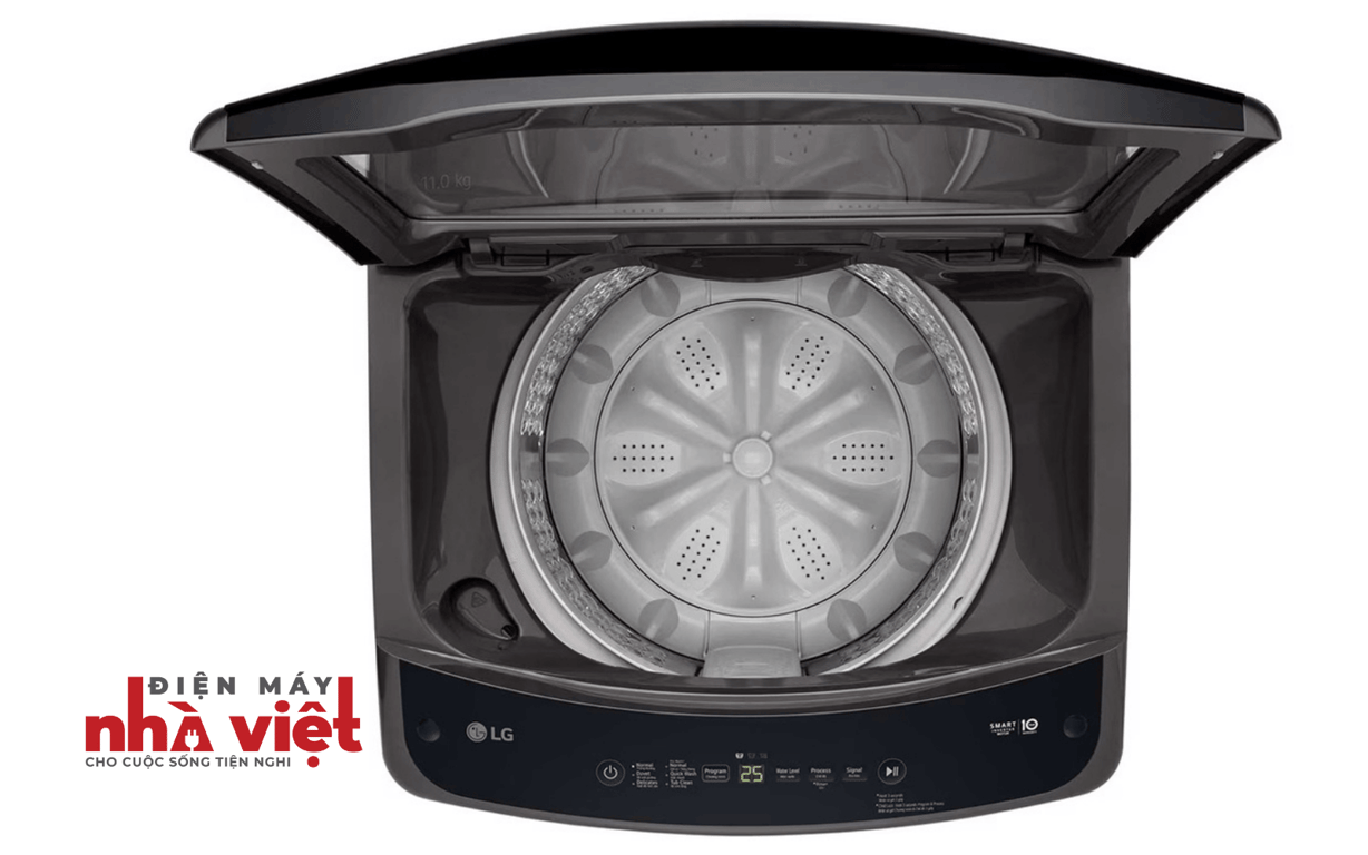 - Máy giặt LG Inverter này có khối lượng giặt 11 kg, thích hợp với gia đình có trên 7 thành viên hoặc gia đình ít thành viên hơn nhưng có nhu cầu giặt giũ hằng ngày cao.