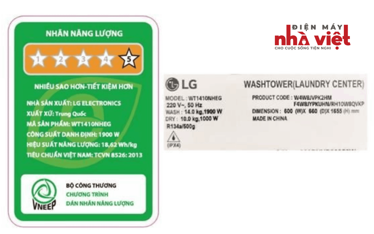 - Nhãn năng lượng: 5 sao. Hiệu suất sử dụng điện 18.6 Wh/kg.