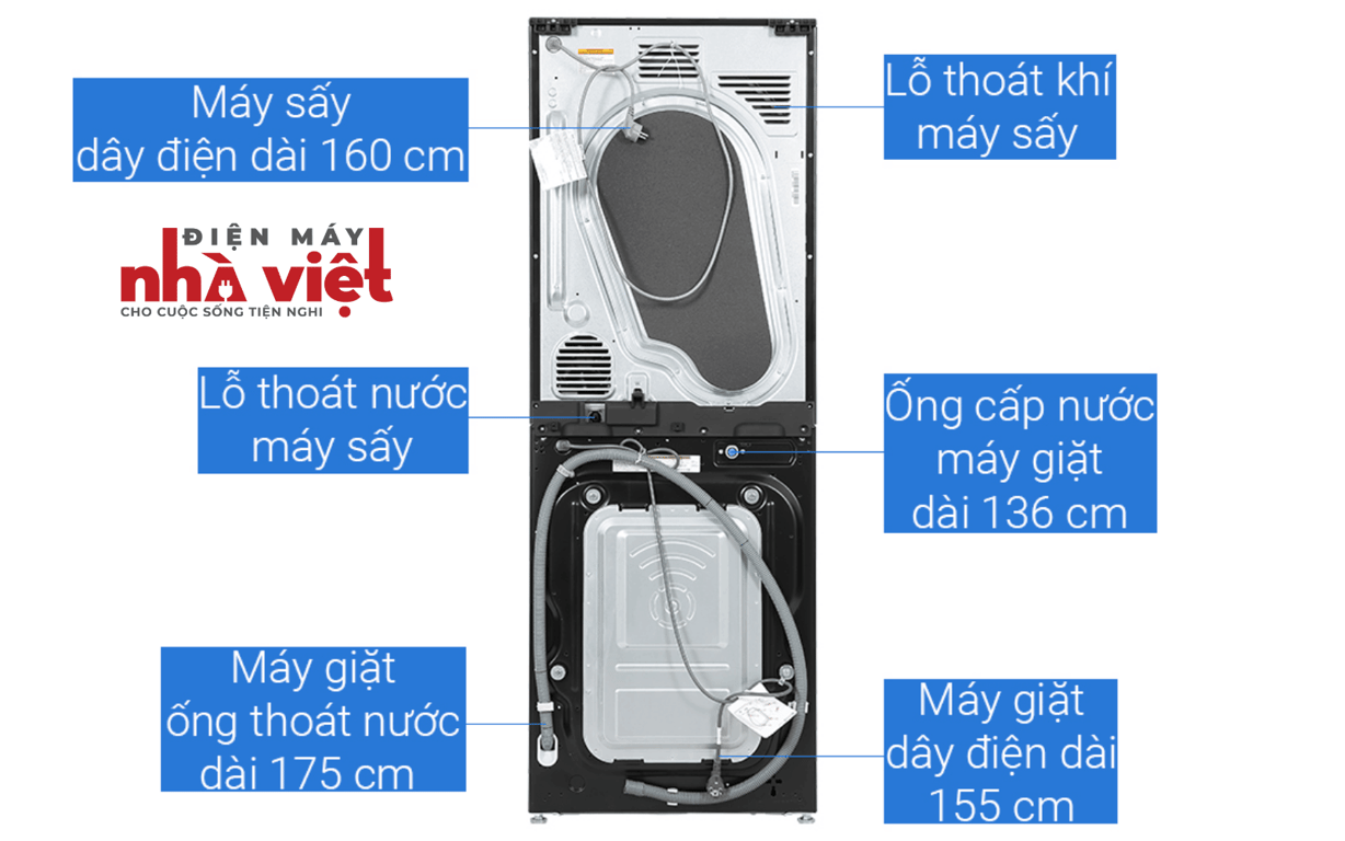 - Khối lượng giặt tối đa 14 kg, sấy 10 kg lựa chọn thích hợp với các hộ gia đình trên 7 người hoặc gia đình ít người hơn nhưng có nhu cầu giặt giũ hằng ngày lớn.