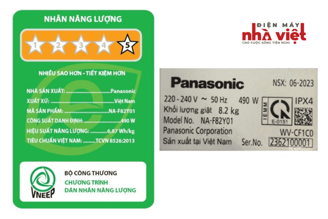 - Sản phẩm đạt nhãn năng lượng 5 sao với hiệu suất sử dụng điện khoảng 6.87 Wh/kg.