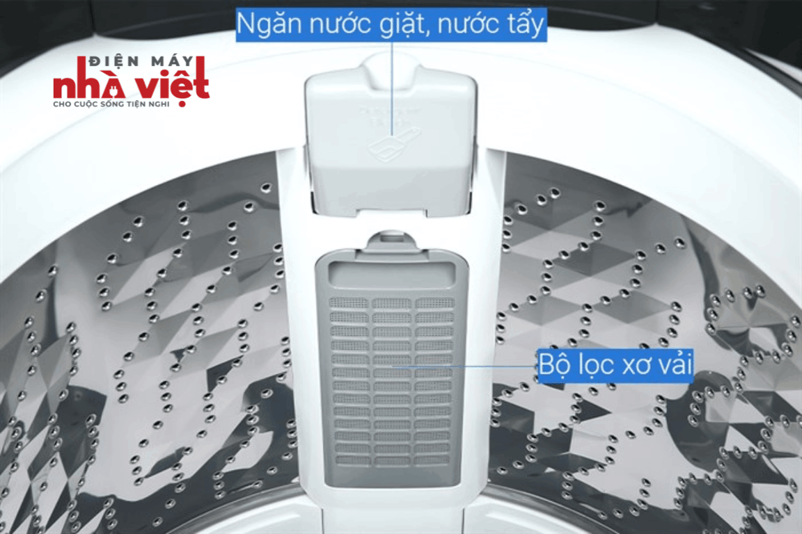 Ngoài ra, máy giặt Panasonic cửa trên này còn sở hữu bộ lọc vải có vai trò giữ lại xơ vải, bụi bẩn, cặn vải trong quá trình giặt giũ. Từ đó, bạn sẽ không còn gặp tình trạng xơ vải bám vào quần áo gây khó chịu và dị ứng.
