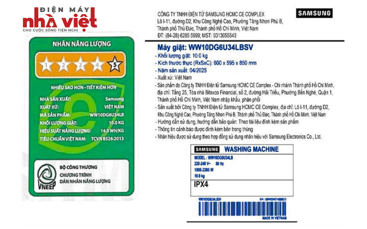 Với những tính năng vượt trội từ công nghệ giặt thông minh, tiết kiệm điện năng, bảng điều khiển hiện đại đến khả năng kết nối linh hoạt, máy giặt Samsung Inverter 10 kg WW10DG6U34LBSV xứng đáng là lựa chọn hàng đầu cho mọi gia đình hiện đại.