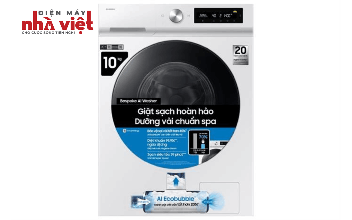 - AI EcoBubble+ tạo bong bóng siêu mịn giúp thẩm thấu chất giặt nhanh vào sợi vải, làm sạch hiệu quả ngay cả trong nước lạnh.