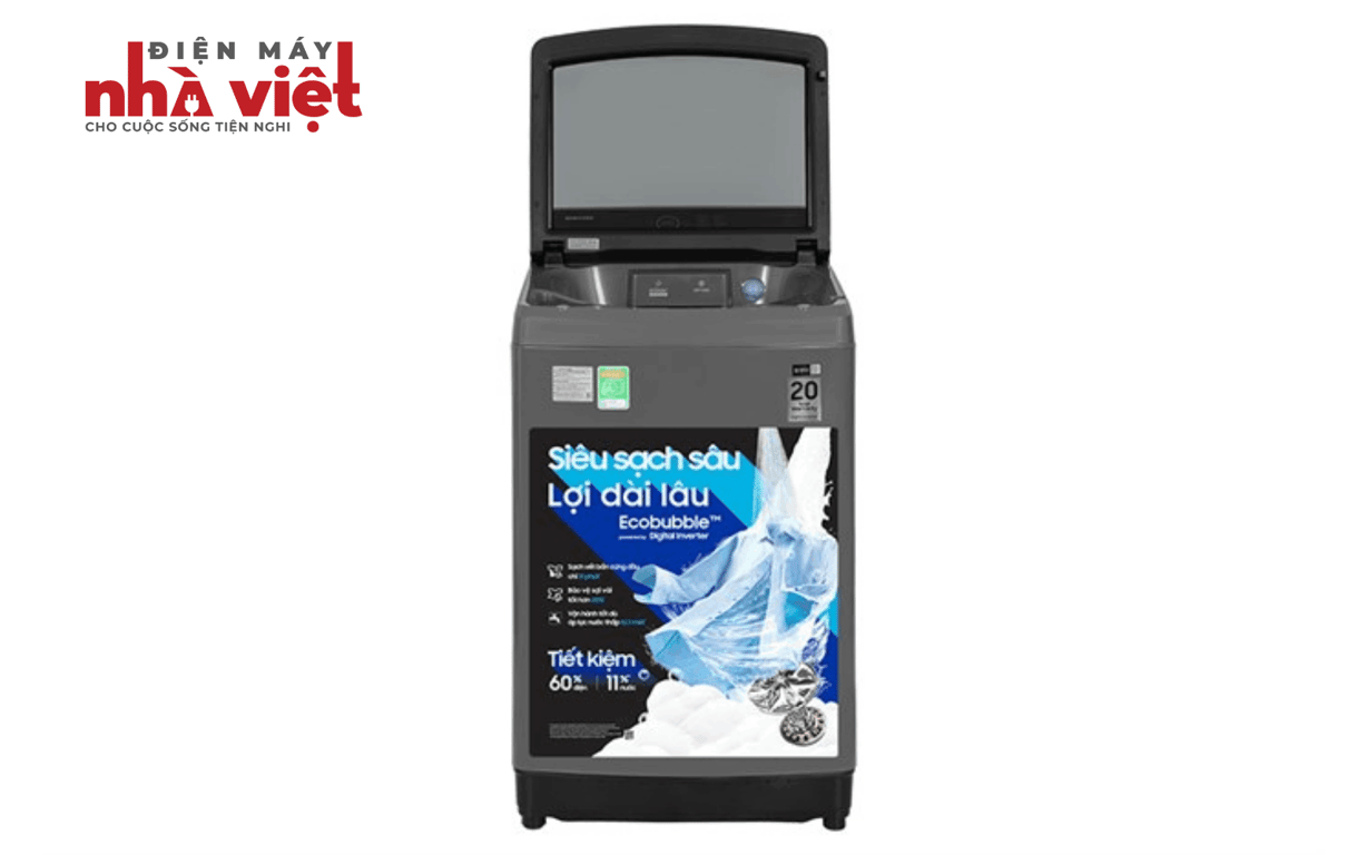 - Công nghệ bong bóng siêu mịn EcoBubble: Công nghệ EcoBubble có khả năng đánh tan bột giặt/nước giặt thành bong bóng siêu mịn để tăng tốc độ thẩm thấu vào sâu bên trong sợi vải. Nhờ đó, công nghệ này giúp đánh bật vết bẩn hiệu quả hơn, đồng thời hỗ trợ loại bỏ vết loang, cặn bám chất giặt tẩy và bảo vệ độ bền sợi vải tốt hơn 20%.