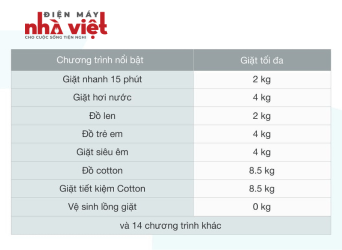 Máy có khối lượng giặt máy giặt 8.5 kg phù hợp với những hộ gia đình có từ 3 - 5 thành viên.