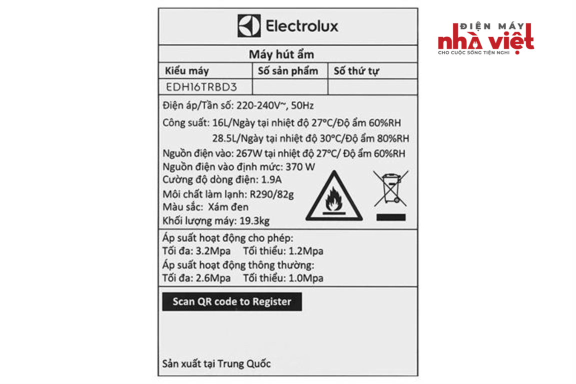 Với công suất hoạt động 370W, máy vận hành hiệu quả trong phòng diện tích lên đến 66m². Khả năng hút ẩm đạt 28.5 lít/ngày (ở 30°C - 80%RH) và 16 lít/ngày (ở 26.7°C - 60%RH), đáp ứng tốt nhu cầu sử dụng trong điều kiện khí hậu ẩm ướt.
