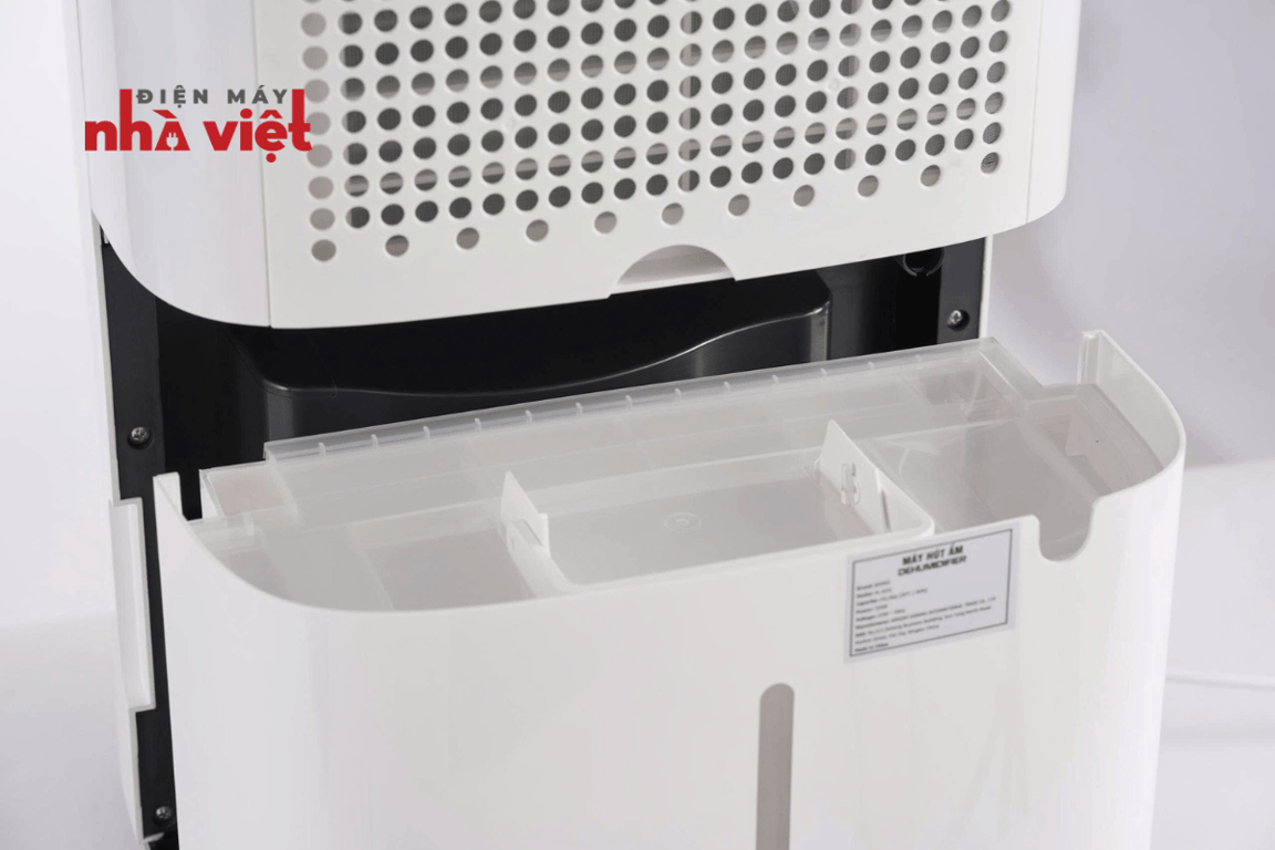 - Vận hành êm ái với độ ồn <40db đảm bảo không gây ảnh hưởng đến giấc ngủ và sinh hoạt hàng ngày, công suất hút ẩm 25L/ngày, bình chứa nước thải 6L, Phạm vi sử dụng từ 15-50m2, chất liệu nhựa ABS cao cấp, có bánh xe di chuyển rất tiện lợi.