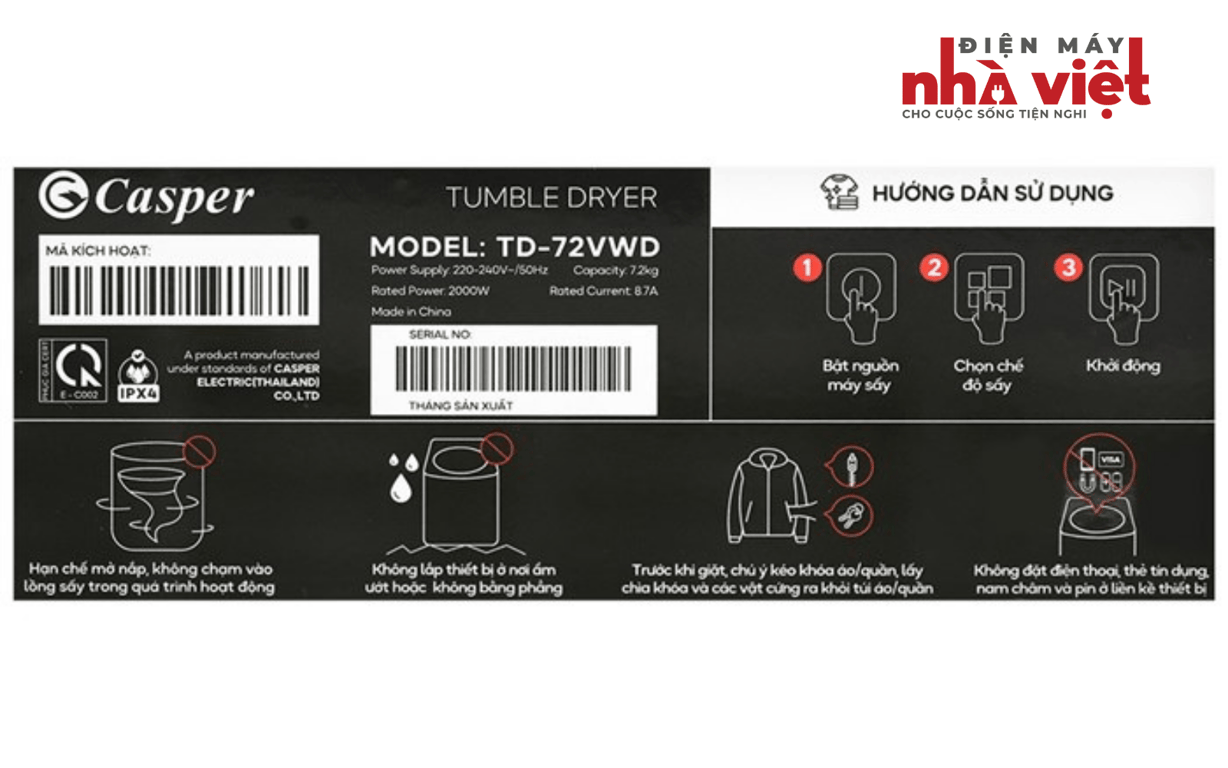 Nhìn chung, với khối lượng sấy tối đa 7.2 kg, cùng công nghệ sấy đảo chiều giảm nhăn, chức năng Refresh đánh bay mùi hôi bám trên quần áo,... máy sấy thông hơi Casper TD-72VWD sẽ là sự lựa chọn phù hợp cho các gia đình có từ 2 - 3 thành viên.