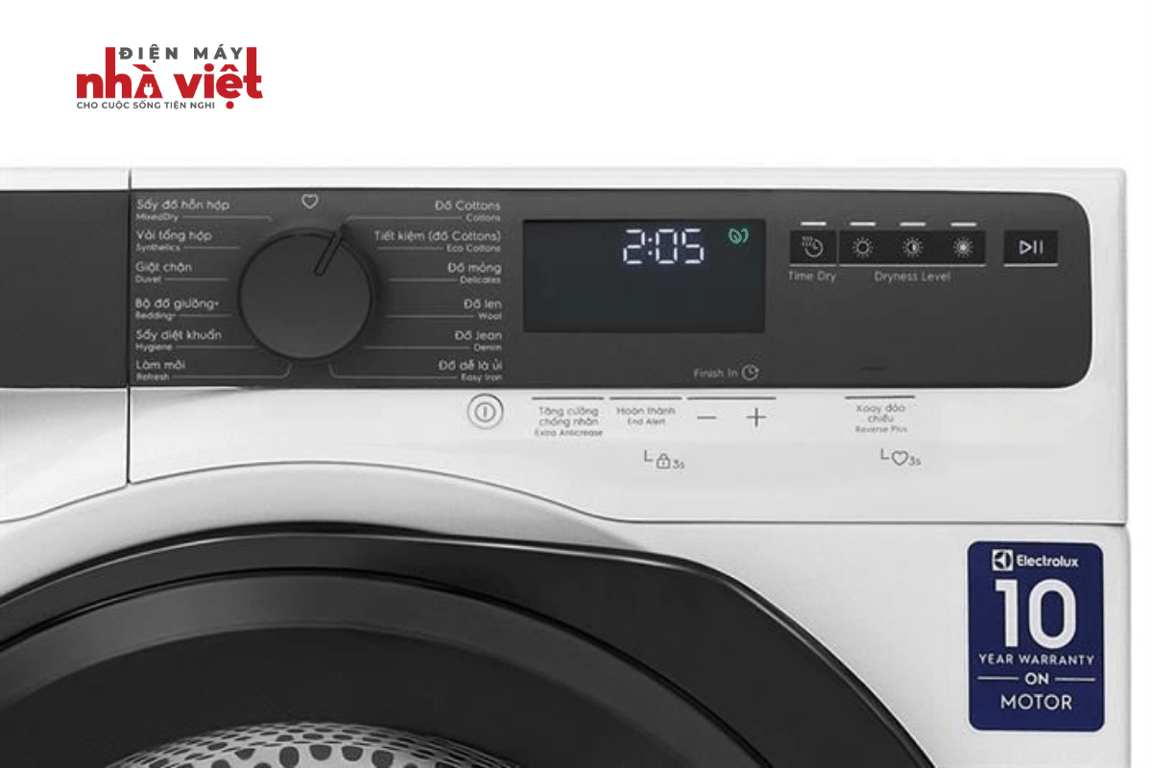 Với tùy chọn chống nhăn tăng cường Extra AntiCrease, máy tiếp tục chuyển động thêm lên tới 120 phút liên tục sau khi hoàn tất chu trình sấy, giúp quần áo đã khô hạn chế tình trạng bị nhăn và gấp nếp.