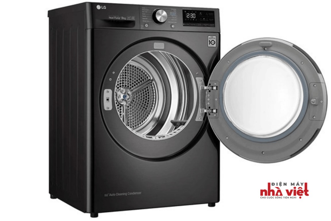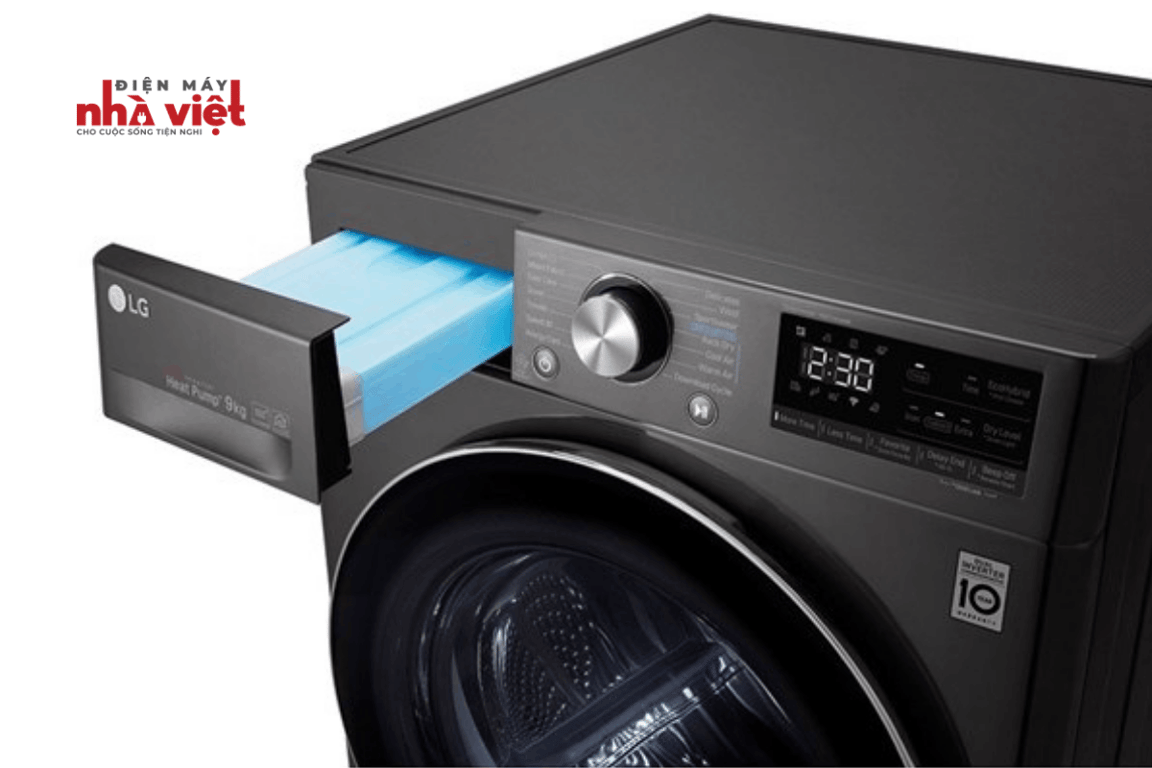 Máy sấy LG có thể sấy tối đa 9 kg quần áo cho mỗi lần sấy, phù hợp với những gia đình có 3 - 5 thành viên.