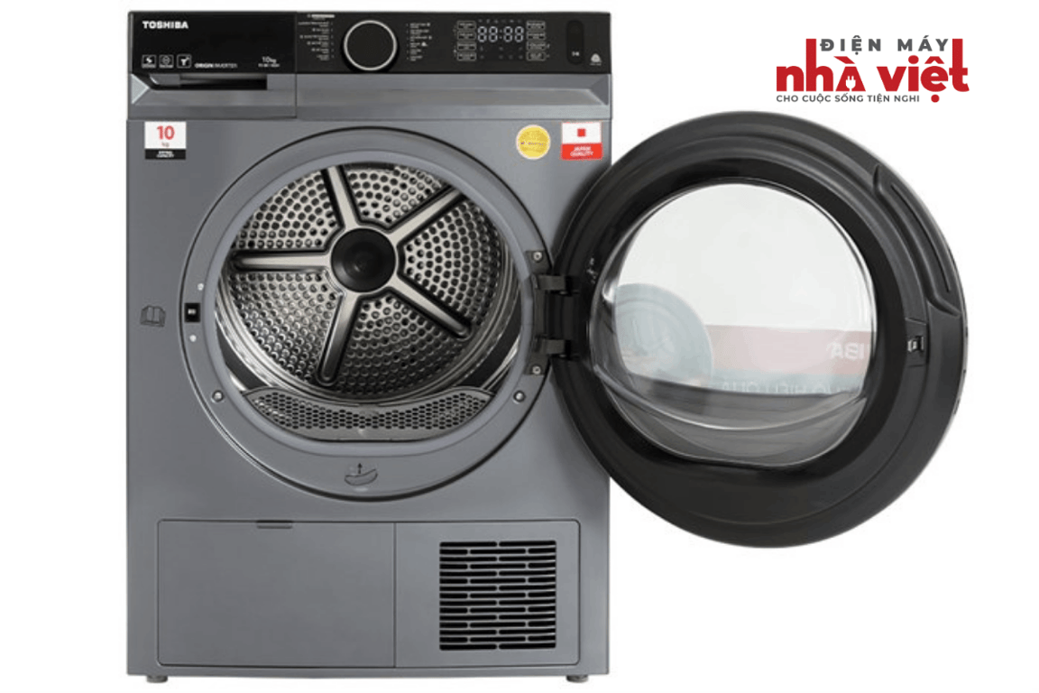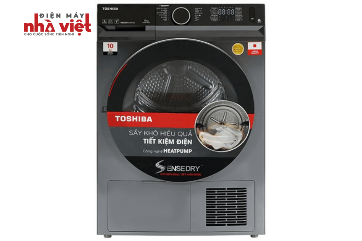 Máy sấy bơm nhiệt Toshiba 10 kg TD-BK110GHV(MK) có thiết kế hiện đại, sang trọng, có khối lượng sấy 10 kg phù hợp với gia đình từ 5 - 7 thành viên, trang bị 12 chương trình sấy tự động tiện lợi đáp ứng đa dạng nhu cầu sấy quần áo, công nghệ Origin Inverter vận hành êm ái, tiết kiệm năng lượng và giảm chi phí sinh hoạt cho gia đình bạn.