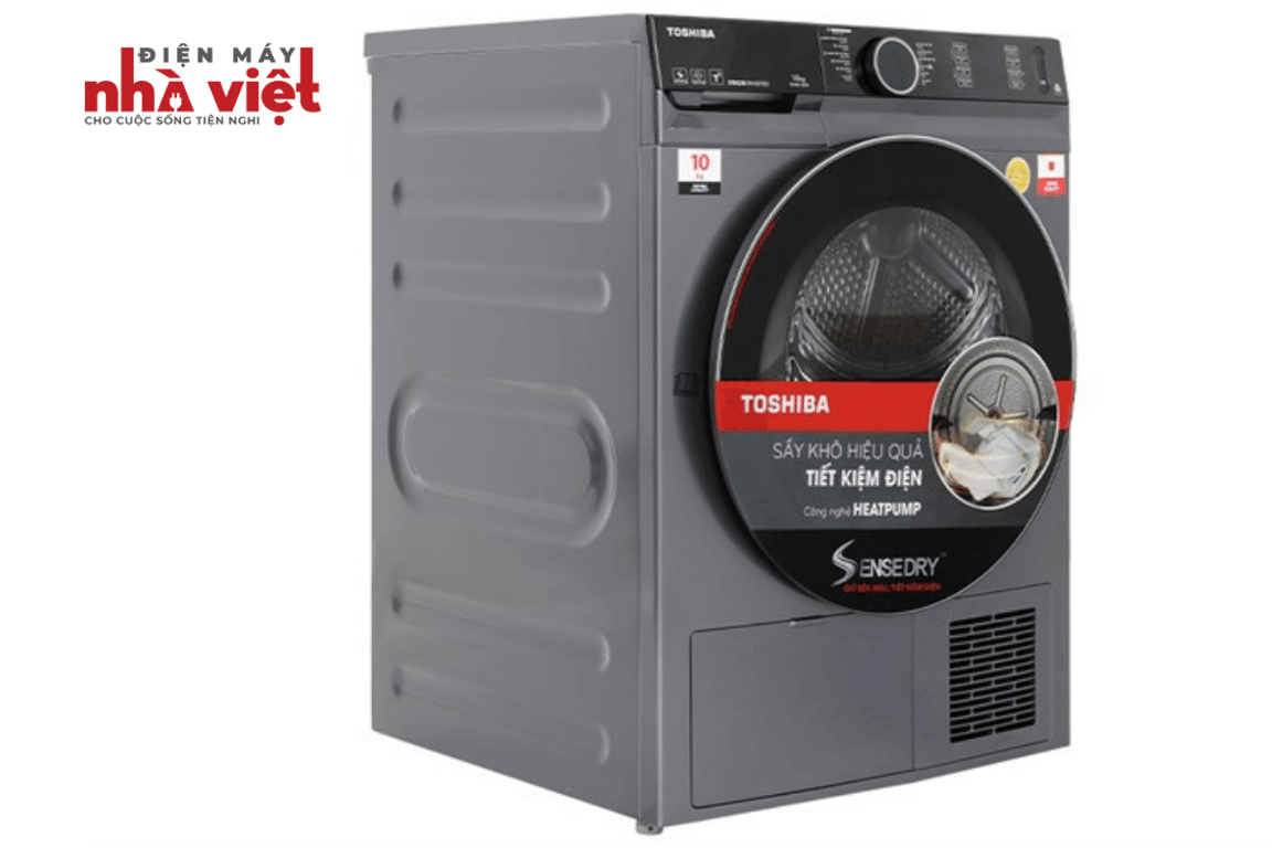 - Công nghệ sấy SenseDry: Máy sấy quần áo Toshiba trang bị cảm biến nhiệt độ và độ ẩm tự động điều chỉnh thời gian sấy phù hợp, không sấy khô quần áo quá mức, bảo vệ sợi vải, độ bền màu của trang phục.
