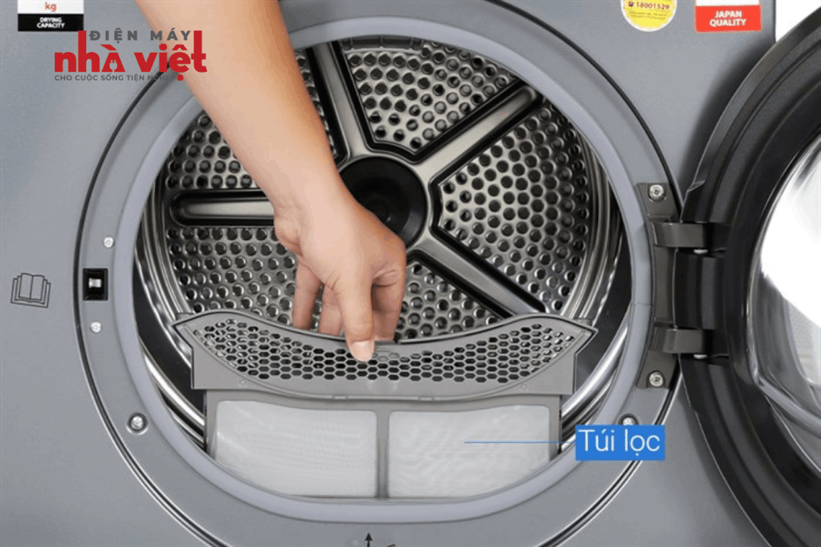 Cơ chế: Sấy bơm nhiệt sử dụng máy nén làm nóng luồng khí làm khô quần áo với nhiệt độ vừa phải, bảo vệ sợi vải và tiết kiệm điện hơn các công nghệ sấy thông thường.