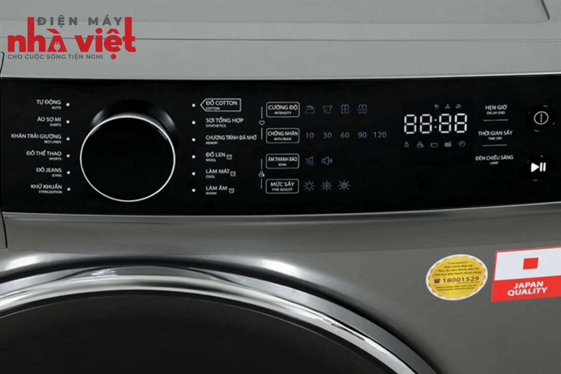 - Hẹn giờ hoàn thành: chức năng cho phép cài đặt sẵn thời gian hoàn thành chu trình sấy của máy, từ đó giúp bạn chủ động kiểm soát thời gian, dành cho những gia đình bận rộn công việc.