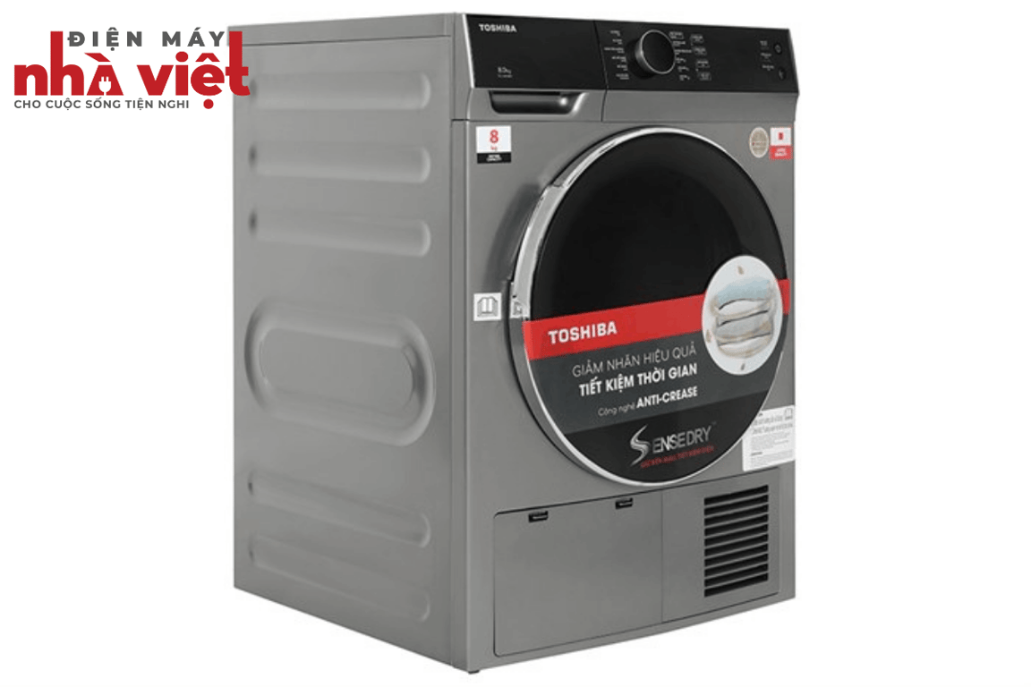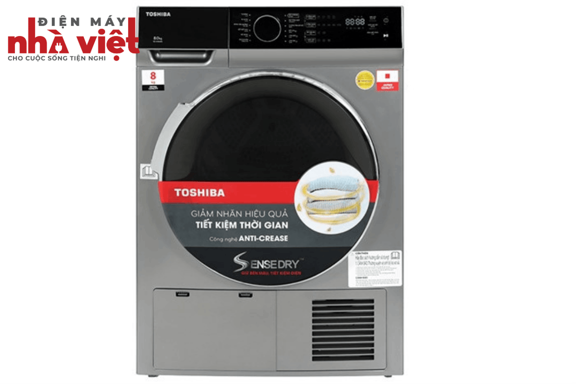 Tóm lại, máy sấy ngưng tụ Toshiba 8 kg TD-K90MEV(SK) với thiết kế cứng cáp, bảng điều khiển cảm ứng hiện đại, hỗ trợ đa dạng 12 chương trình sấy, công nghệ SenseDry giảm phai màu quần áo, chế độ khử khuẩn bảo vệ sức khỏe cả gia đình, khối lượng giặt tới 8 kg, lựa chọn hợp lý cho gia đình có từ 3 - 5 người.