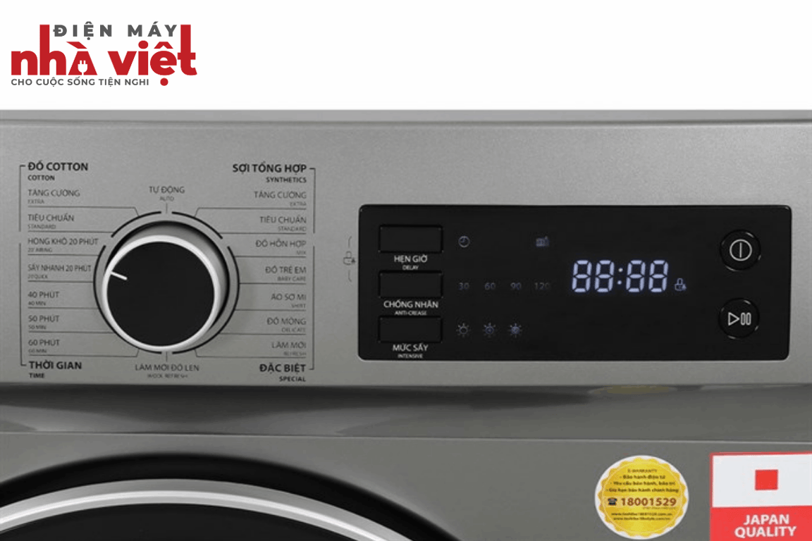 - Bảng điều khiển song ngữ Anh - Việt, nút nhấn kết hợp cùng núm xoay dễ dàng thao tác sử dụng, có màn hình hiển thị.