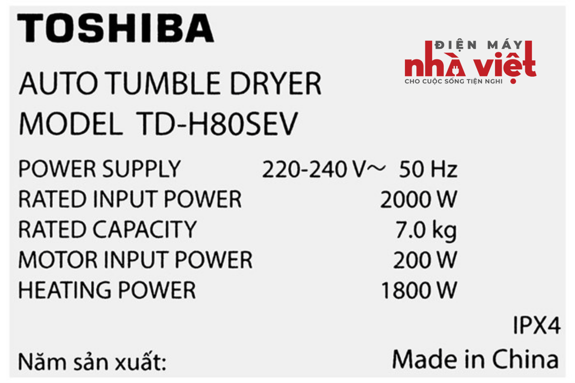 Máy sấy thông hơi 7 kg Toshiba TD-H80SEV(SK) có khối lượng sấy 7 kg sấy khoảng 10 - 12 bộ quần áo/lần sấy, có nhiều chương trình sấy phù hợp với nhu cầu sấy khác nhau, sấy nhanh quần áo trong 20 phút với lượng đồ ít.