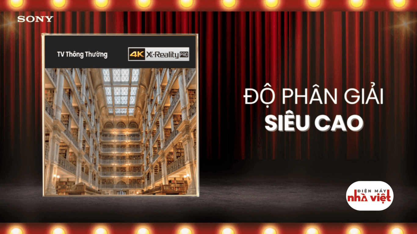 Tivi trang bị chip xử lý hình ảnh 4K X1 và công nghệ 4K X-Reality Pro, thuật toán giúp phân tích tín hiệu đầu vào, làm sạch và tinh chỉnh trước khi đưa lên màn hình. Dải màu sắc được mở rộng thêm, các cảnh chuyển động sẽ mượt mà hơn. Mọi thứ sẽ trở nên sống động và chân thực nhất cho trải nghiệm người dùng.