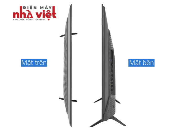 - Sử dụng chân đế chữ V úp ngược bằng hợp kim có độ bền cao, khả năng chịu lực tốt giúp giữ tivi ổn định khi sắp đặt kiểu để bàn. Ngoài ra, bạn có thể tách rời chân đế và gắn tivi lên tường cho không gian phòng thêm rộng rãi hơn.