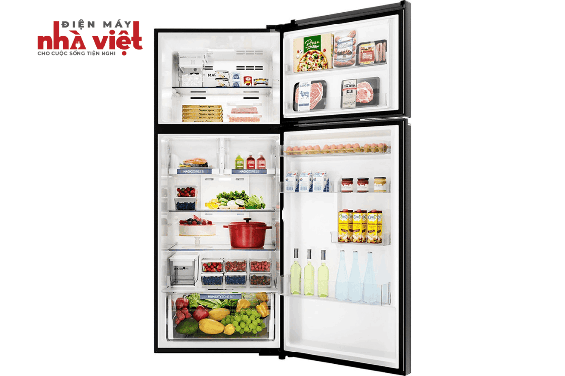Tổng dung tích 455 lít phù hợp cho gia đình từ 3-5 thành viên. Ngăn đông dung tích 99 lít được thiết kế thông minh với bộ phận làm đá, kệ ngăn đông và các khay đựng tại cửa tủ, tối ưu hóa không gian lưu trữ thực phẩm đông lạnh. Ngăn lạnh rộng rãi 356 lít gồm 2 ngăn Magic Zone tiện lợi, khay kệ ngăn lạnh lớn cùng các khay đựng tại cửa tủ, giúp sắp xếp thực phẩm khoa học và dễ dàng tìm kiếm.