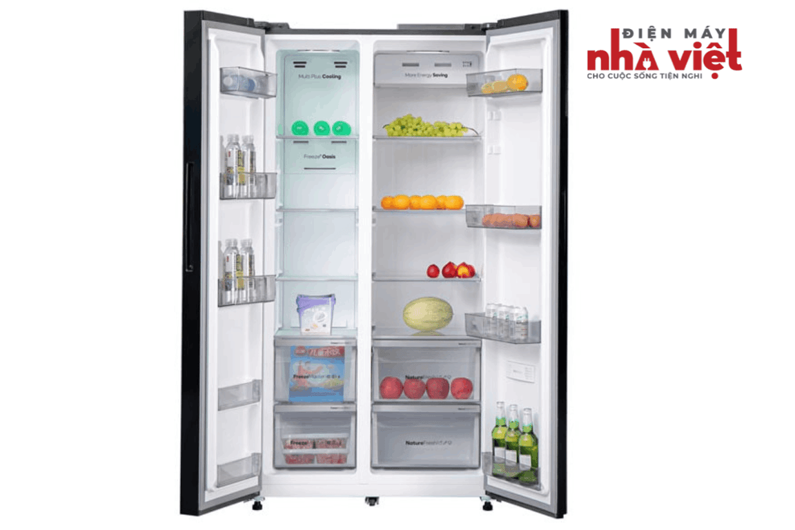 Một trong những ưu điểm vượt trội của Casper RS-E530PBS là dung tích lên đến 530 lít, phù hợp với các gia đình từ 4 – 6 người hoặc có nhu cầu trữ thực phẩm số lượng lớn. Tủ được chia ngăn khoa học, bao gồm: