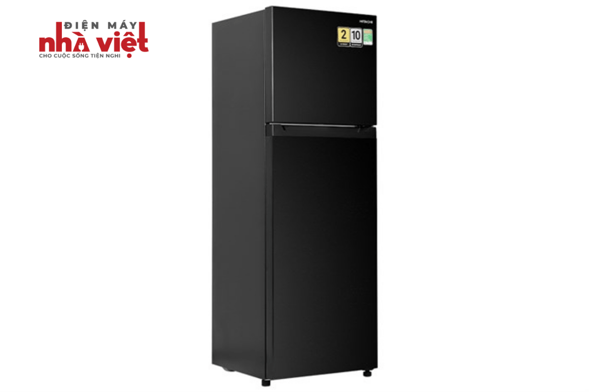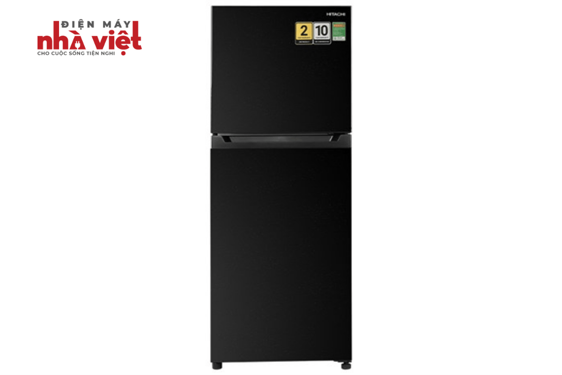 - Tủ lạnh Hitachi với thiết kế kiểu dáng ngăn đá trên, tone màu đen kết hợp dễ dàng với nội thất trong gia đình.
