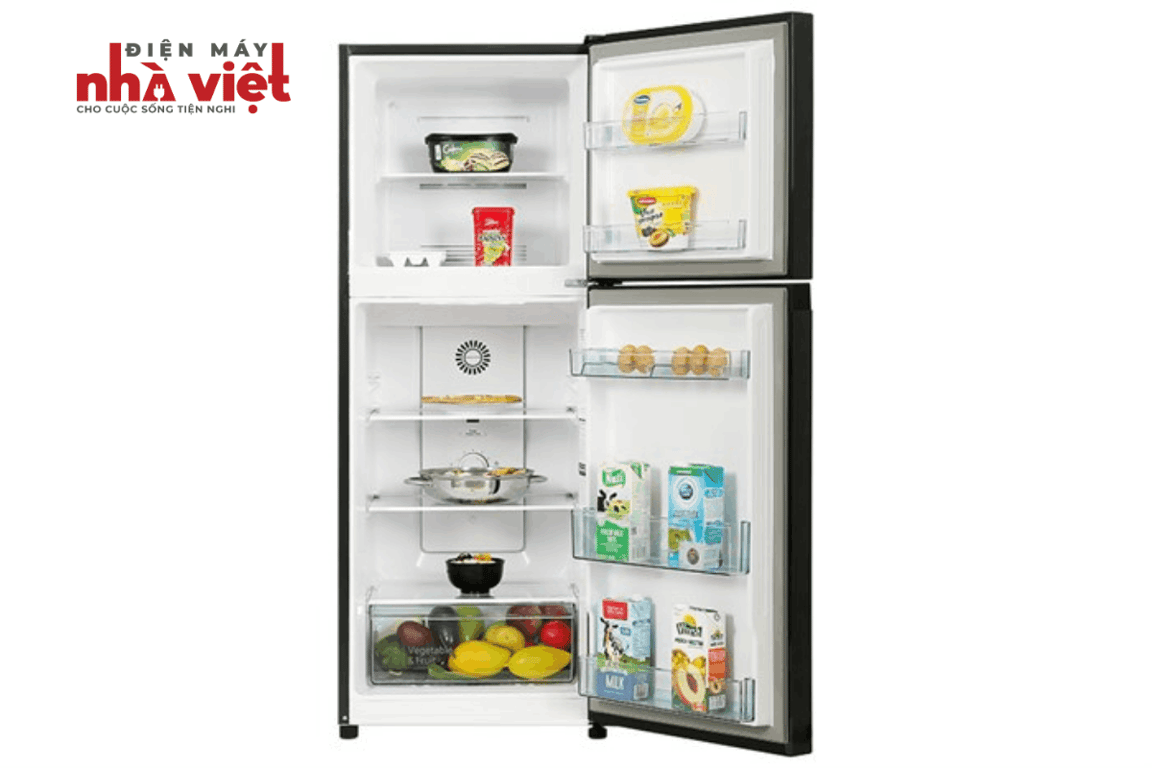 Ngăn lạnh sở hữu dung tích 154 lít, trang bị nhiều khay kệ, hộc chứa giúp tiện lợi trong việc lưu trữ nhiều loại thực phẩm.